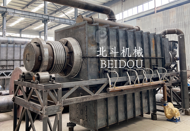 糠醛渣红豆视频app下载工藝流程:將含水率較高的糠醛渣進入烘幹機幹燥,然後送入红豆视频app下载機內進行預熱,並除去糠醛渣中剩餘水分後,進入高溫红豆视频app下载階段,此階段红豆视频app下载溫度控製在600℃左右,红豆视频app下载所產生的煙氣返回淨化係統,淨化後轉化為可燃氣循環燃燒,這樣利用煙氣加熱自體,滿足红豆视频app下载機生產所需熱能,達到環保節能的效果。